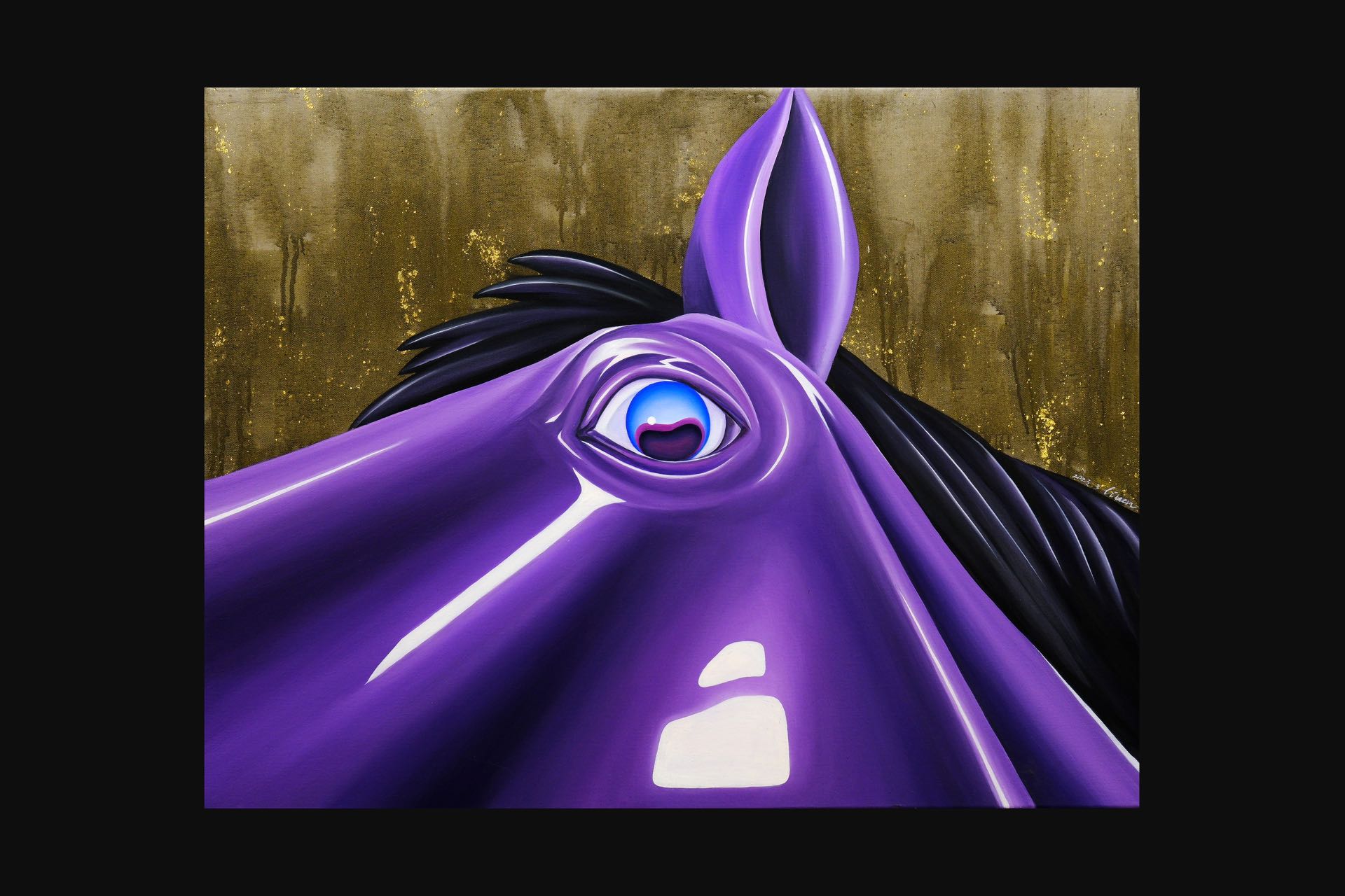 本作品は紫色の翡翠馬をテーマに、異なる角度から物事を観察し描きました。画面には、スミレ色のような紫色の追求、滑らかで丸みを帯びた質感、そして蛍光の中に輝く光が表現されています。過剰なまでの完璧を求め、原始的な形を丹念に磨き上げた結果、「本物と偽物の境界にあるような質感」は果たして自分が望むものなのかを問いかけています。本質を見つめ直す深い作品です。